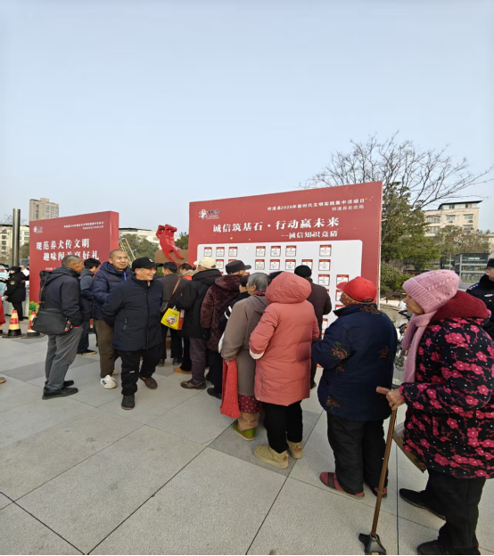 活動(dòng)聚焦“普及誠(chéng)信知識(shí)、強(qiáng)化誠(chéng)信意識(shí)、踐行誠(chéng)信理念”目標(biāo),創(chuàng)新采用線下“隨機(jī)抽題+現(xiàn)場(chǎng)作答+即時(shí)講解”的形式增強(qiáng)體驗(yàn)感。精心設(shè)置單選題、情景判斷題等題型,內(nèi)容涵蓋誠(chéng)信相關(guān)法律法規(guī)、社會(huì)信用體系建設(shè)政策、經(jīng)典誠(chéng)信故事、日常誠(chéng)信行為規(guī)范等多個(gè)方面。現(xiàn)場(chǎng)群眾通過(guò)抽號(hào)答題、互動(dòng)競(jìng)猜的方式,在輕松氛圍中學(xué)習(xí)誠(chéng)信知識(shí)。工作人員對(duì)題目中涉及的法律法規(guī)和信用知識(shí)進(jìn)行現(xiàn)場(chǎng)解讀,實(shí)現(xiàn)知識(shí)普及與實(shí)踐指導(dǎo)有機(jī)結(jié)合。活動(dòng)根據(jù)題目難易程度,對(duì)回答正確的老百姓發(fā)放抽紙、洗衣液、香皂等日常生活用品500余份?;顒?dòng)現(xiàn)場(chǎng)還配套發(fā)放《誠(chéng)信建設(shè)宣傳手冊(cè)》等資料500余份,幫助群眾進(jìn)一步理解“守信激勵(lì)、失信懲戒”的社會(huì)信用規(guī)則。